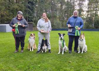 Kreismeistertitel zu erlangen. Trotz sehr wechselhafter Witterung – immer wieder Regen und ein entsprechend aufgeweichter, schlammiger Platz – zeigten die vier gestarteten Mensch-Hund-Teams des