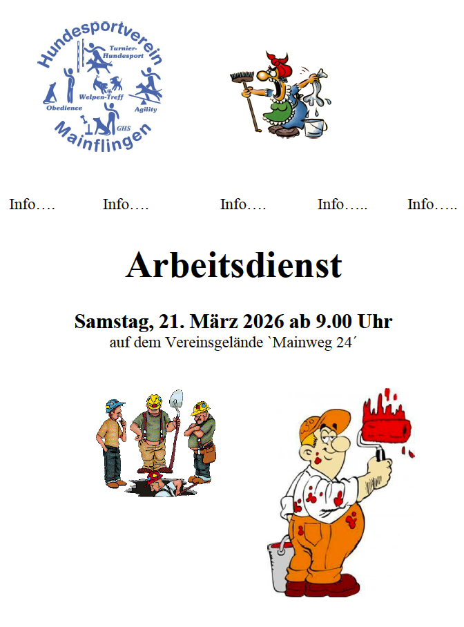 Am Samstag, 22.03.2025 um 9:00 Uhr am Vereinsheim. Natürlich ist für ein kräftiges Mittagessen gesorgt. Wir freuen uns auf viele Helfer.