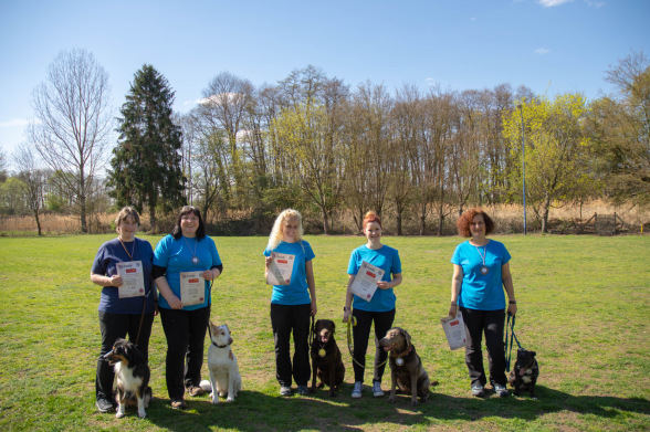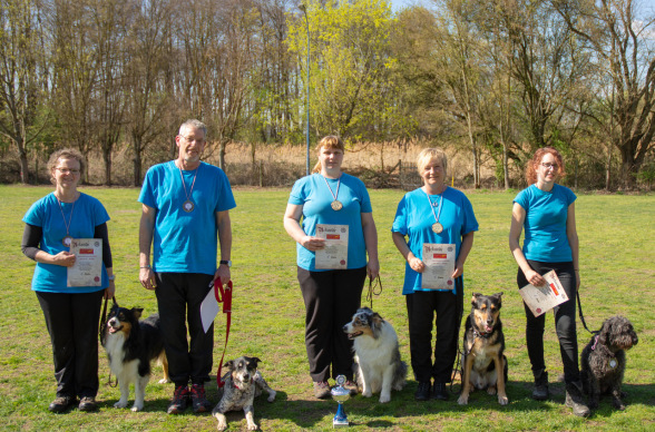 Auf dem Gelände des HSV-Sprendlingen 1912 e.V. konnten auch in diesem Jahr Jürgen Mesenhol mit Emily, Tanja Horlebein mit Ivy, Martina Mesenhol mit Phönix, Lisa Reis mit Daisy und Nicole Ott mit Leika überzeugen und sicherten sich unter der Führung von Martina Wimmer souverän den ersten Platz und damit den Kreismeistertitel mit 182 Punkten.
