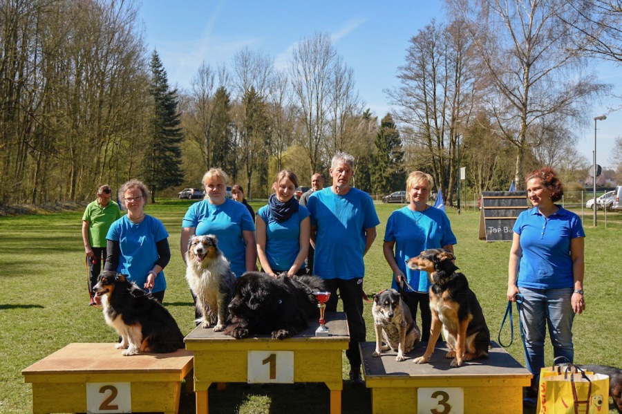 Aber auch für unsere zweite Gruppe war es ein erfolgreicher Tag. Trotz der Tatsache, dass es für fast alle das erste Turnier in der Gruppe und vor allem in dieser Konstellation war, erreichten Martina Wimmer mit Meggy, Susanne Kozelka mit Monchi, Corinna Sommer mit Kajla, Jennifer Disser mit Aimée und Yvonne Schreiner mit Joules verdient den zweiten Platz mit 165 Punkten vor der Hundesportlern aus Klein-Welzheim mit 155 Punkten.