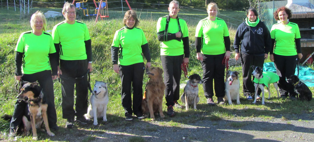 Die Teilnehmer: Martina Mesenhol mit Phönix, Dieter Praetzas mit Leica, Christina Giles mit Zeus, Jürgen Mesenhol mit Emily und Tanja Horlebein mit Ivy, sowie Trainerin Martina Wimmer liefen
