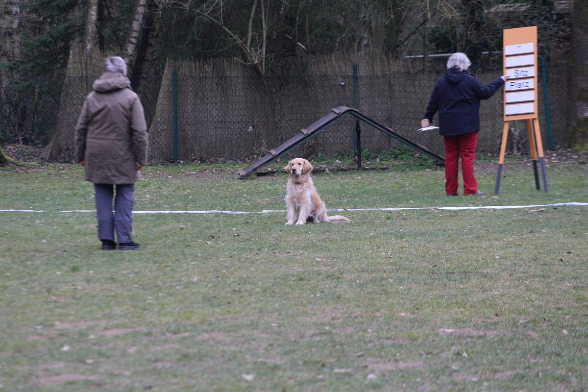In der Klasse 1 betrat Martina Perschbacher mit ihrer Golden Retriever „Emma“ den Ring und zeigten beim Abruf und beim Sprung über die Hürde vorzügliche Arbeit mit der Höchstpunktzahl, aber auch die Distanzkontrolle war vorzüglich. Leider kam bei dem Schicken in die Box das Platzkommando eine Sekunde zu früh und schon waren die Pfoten außerhalb und 30 Punkte verloren. Bei der Fußarbeit war sie etwas verträumt und bei der dem Schicken um Pylone war sie dafür witzig drauf. So reichte es zum Schluss nicht mehr für ein „Gut“, aber Spaß hatte Emma ;)