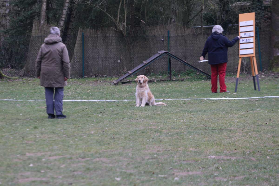 „Ulan“ war leider sehr gesprächig und verlor daher durch alle Übungen viele Punkte. Nur beim Sitz aus der Bewegung war der Knabe mal ruhig und holte sich dabei ein vorzüglich. Dazu leider die Pfoten etwas außerhalb der Box und so reichte es dieses Mal nicht.