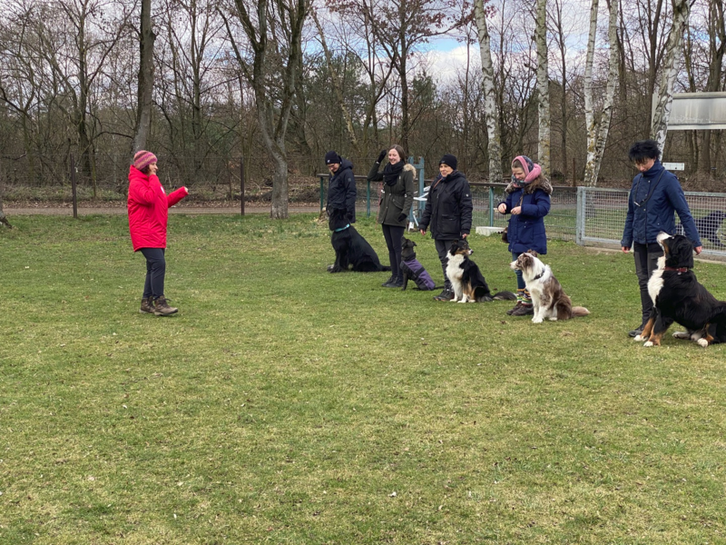 Alle kamen gut durch diese nicht ganz einfache Prüfung, bei der 5 Mensch-Hund-Teams zusammen verschiedene Übungen absolvieren müssen.