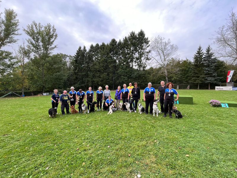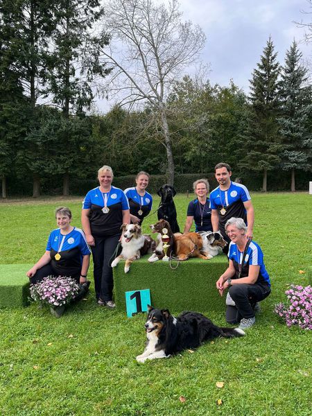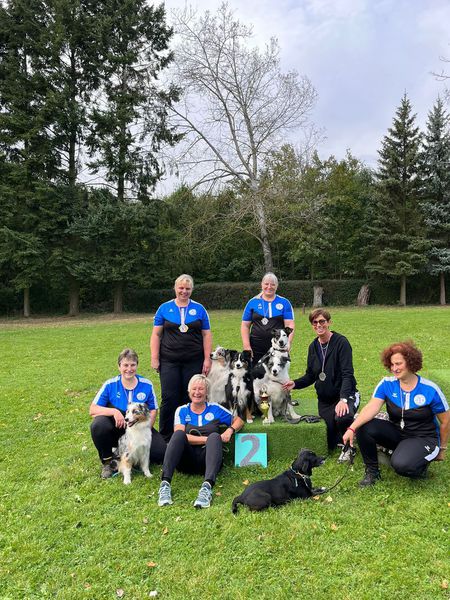 Mit 160 Punkten wurde die Gruppe mit Susanne Kozelka mit Monchi, Maren Kallnik mit Elli, Nicole Ott mit Leika, Tanja Horlebein mit Mogli und Daniel Rosenberger mit Kira unter der Führung von Martina Wimmer souverän Vize Kreismeister.
